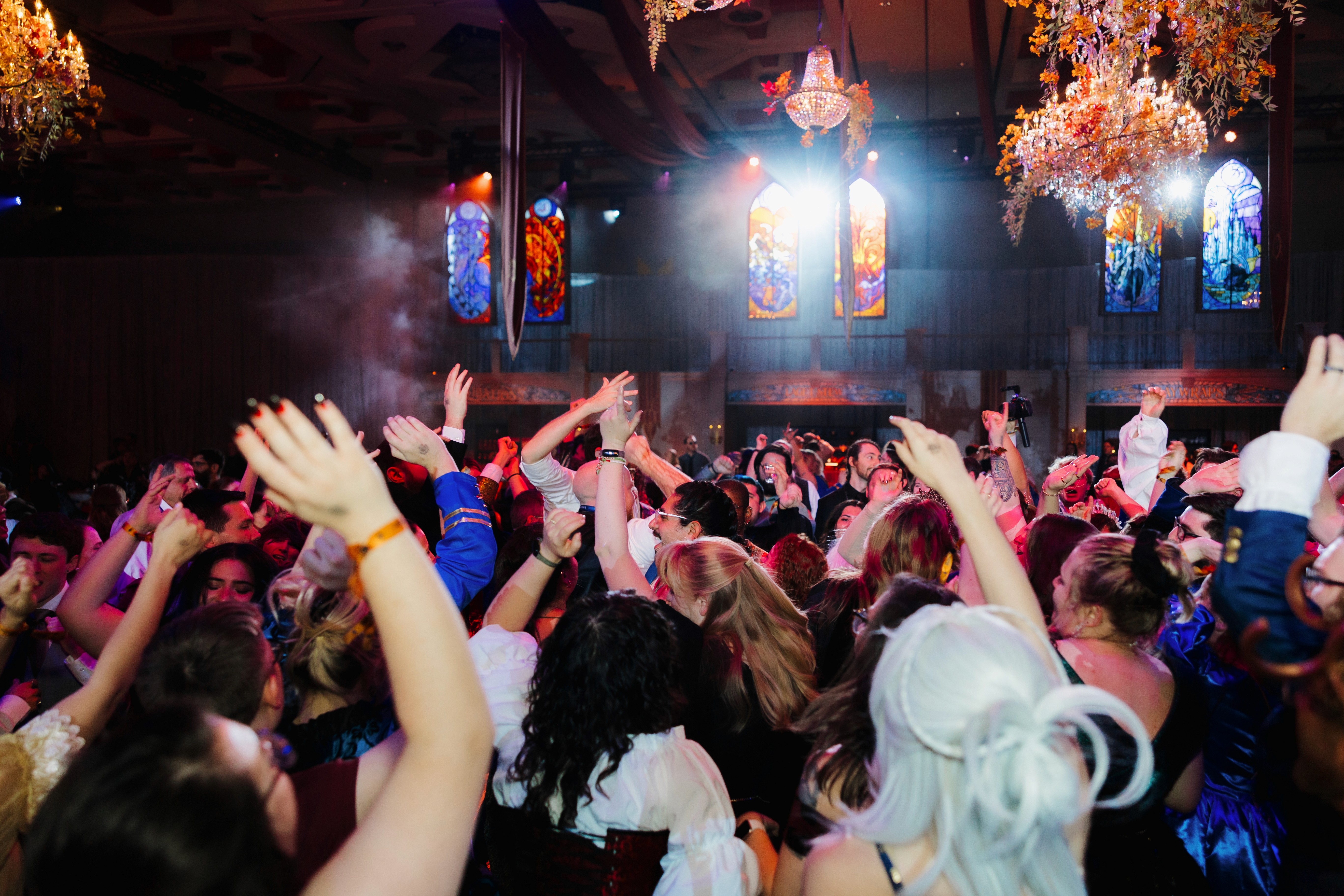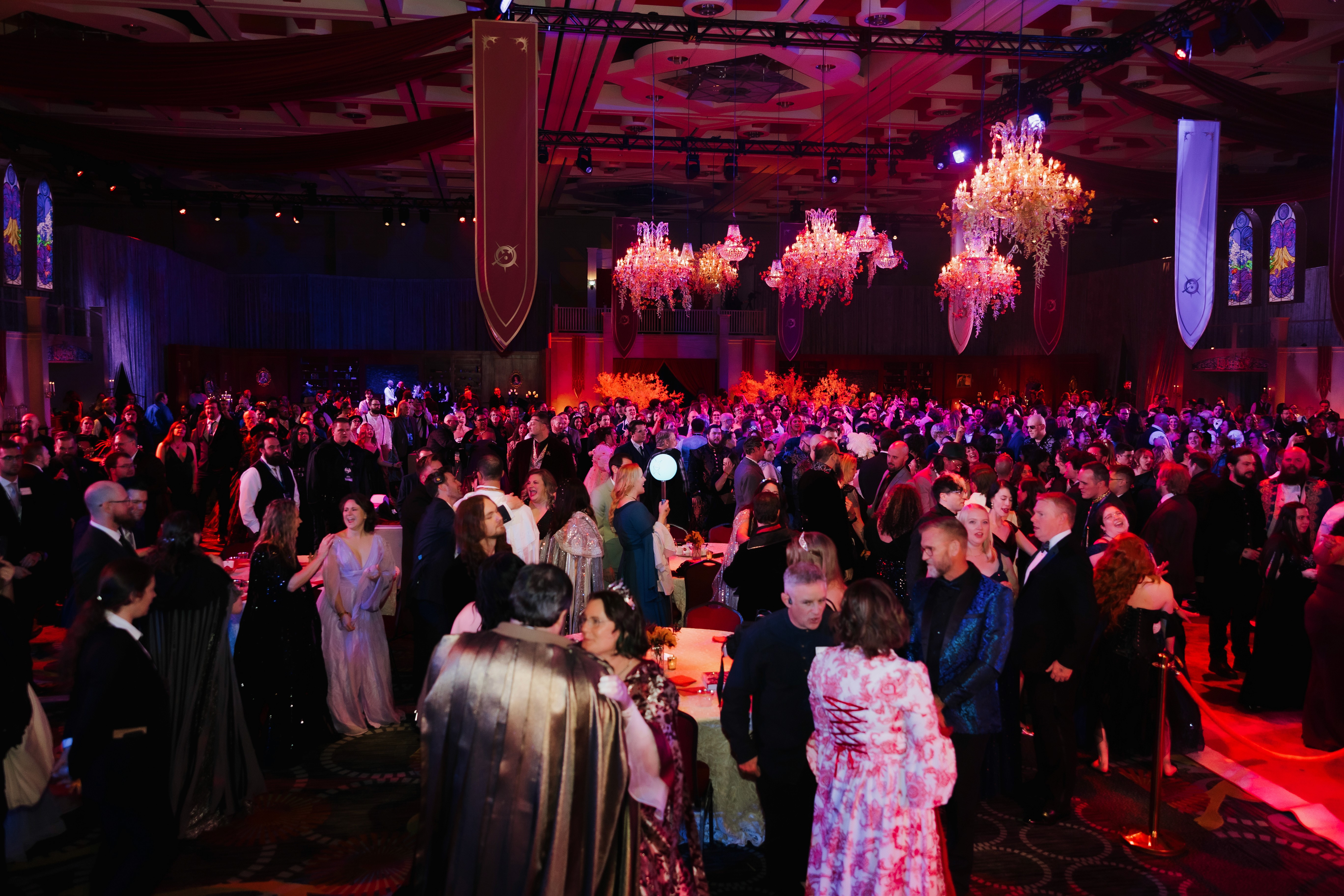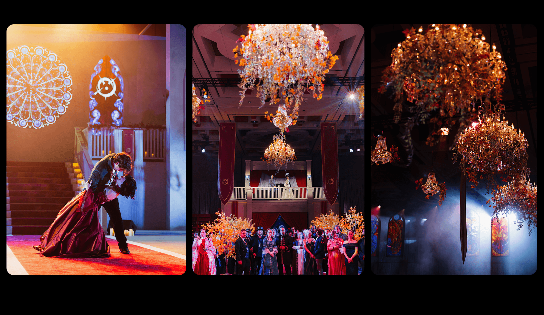 The 2025 ball was imagined as a series of vignettes set in the world of Brandon Sanderson’s best-selling novel, Mistborn. We created a framing device using two character actors who would lead guests through the night's programming, ultimately telling the love story between the romantic leads of the Mistborn series.