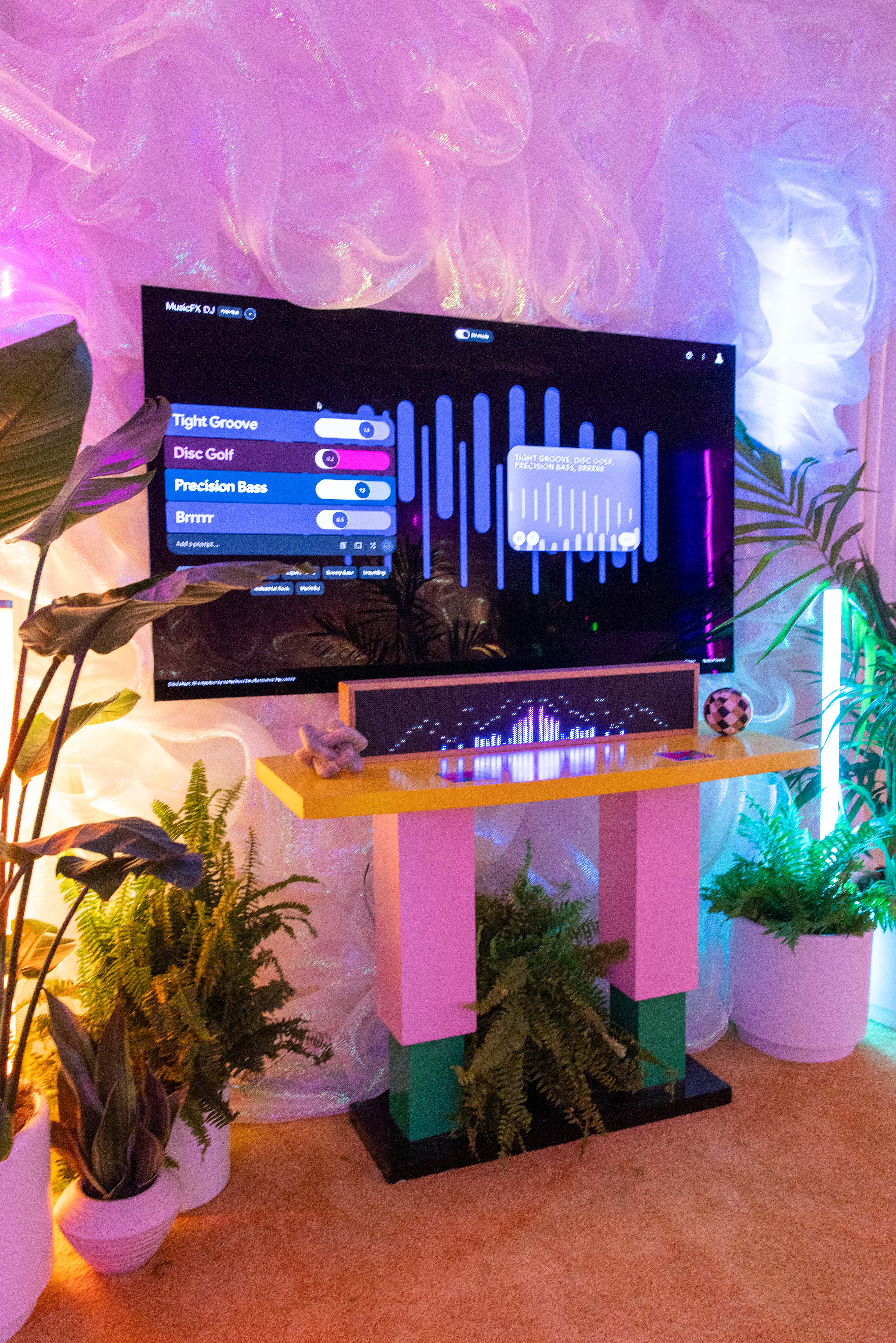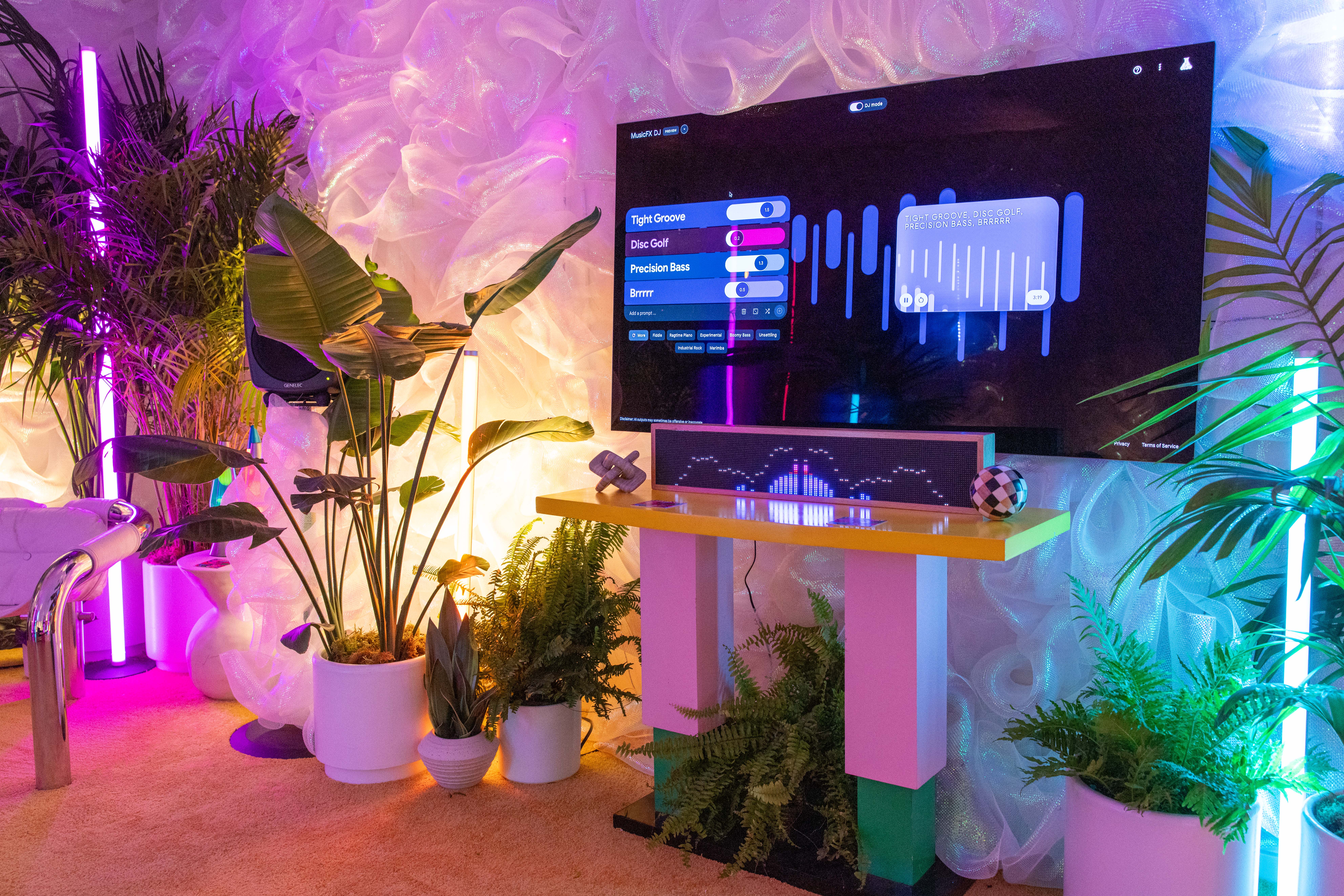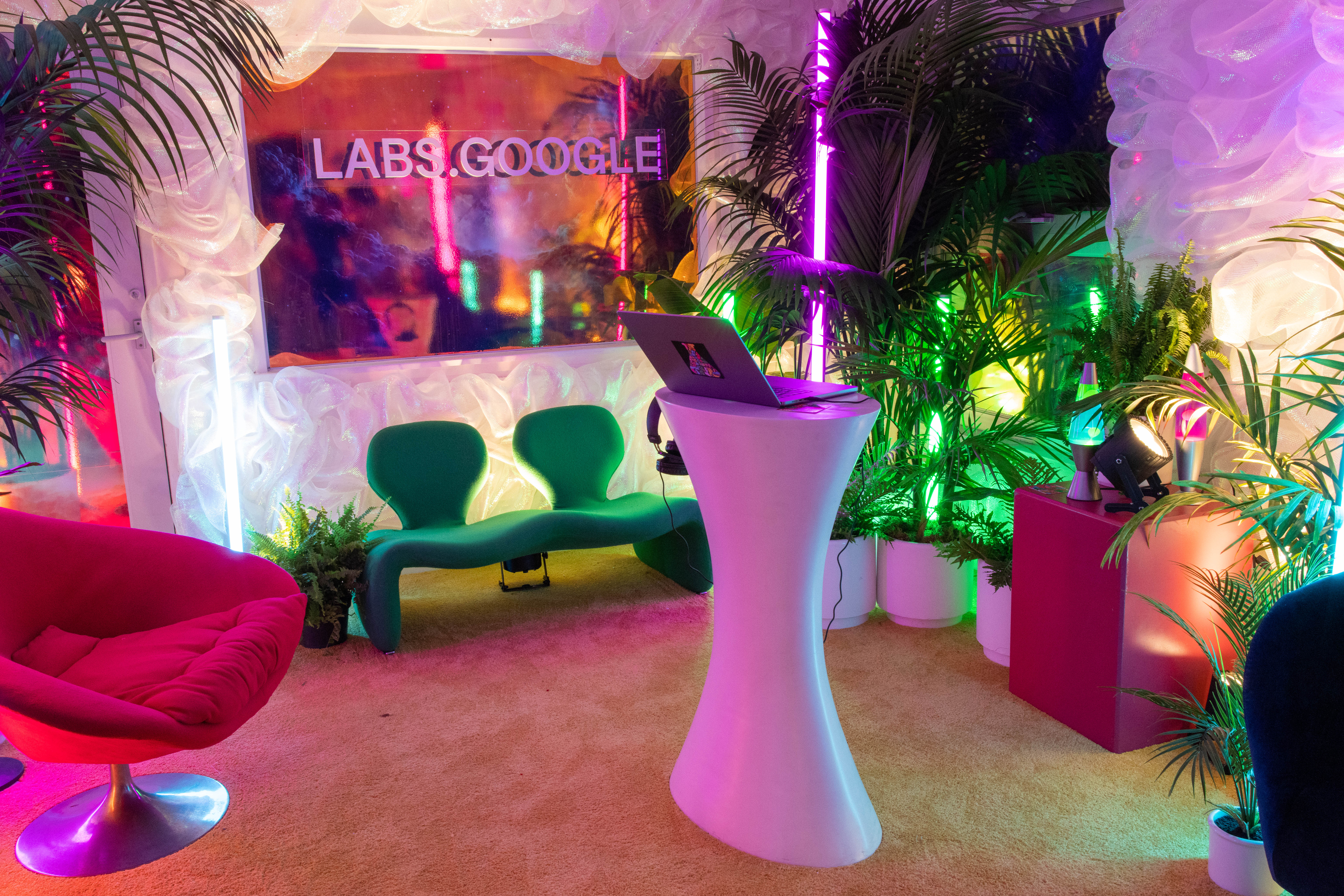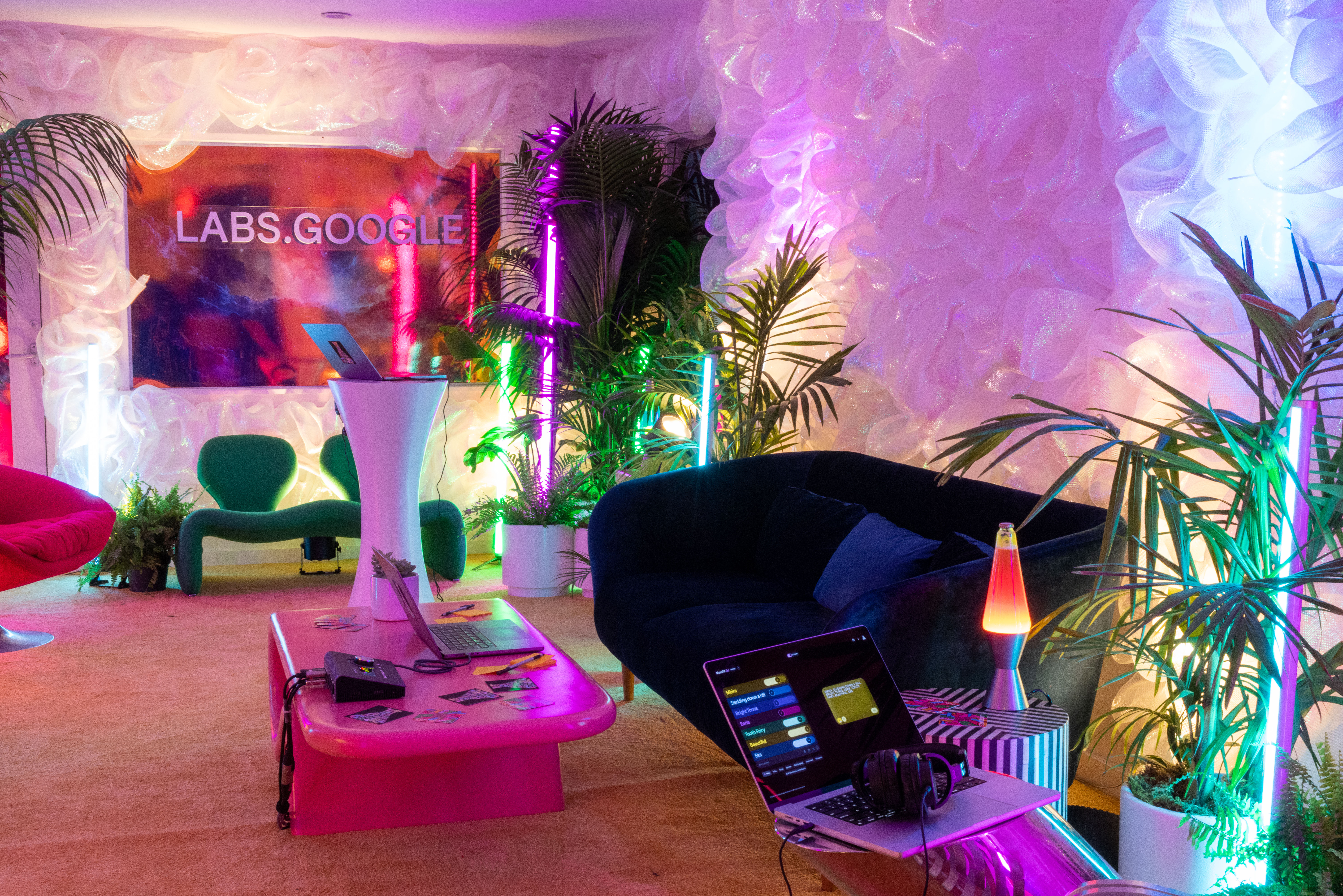 To promote the launch of “MusicFX DJ”, Google’s newest A.I. software, we built a future-aesthetic living room in the style of “Astral Glam”. We worked directly with Google in collaboration with Jacob Collier to pull off this acid-trip of an experience and featured not only A.I. audio programs, but lightning as well.