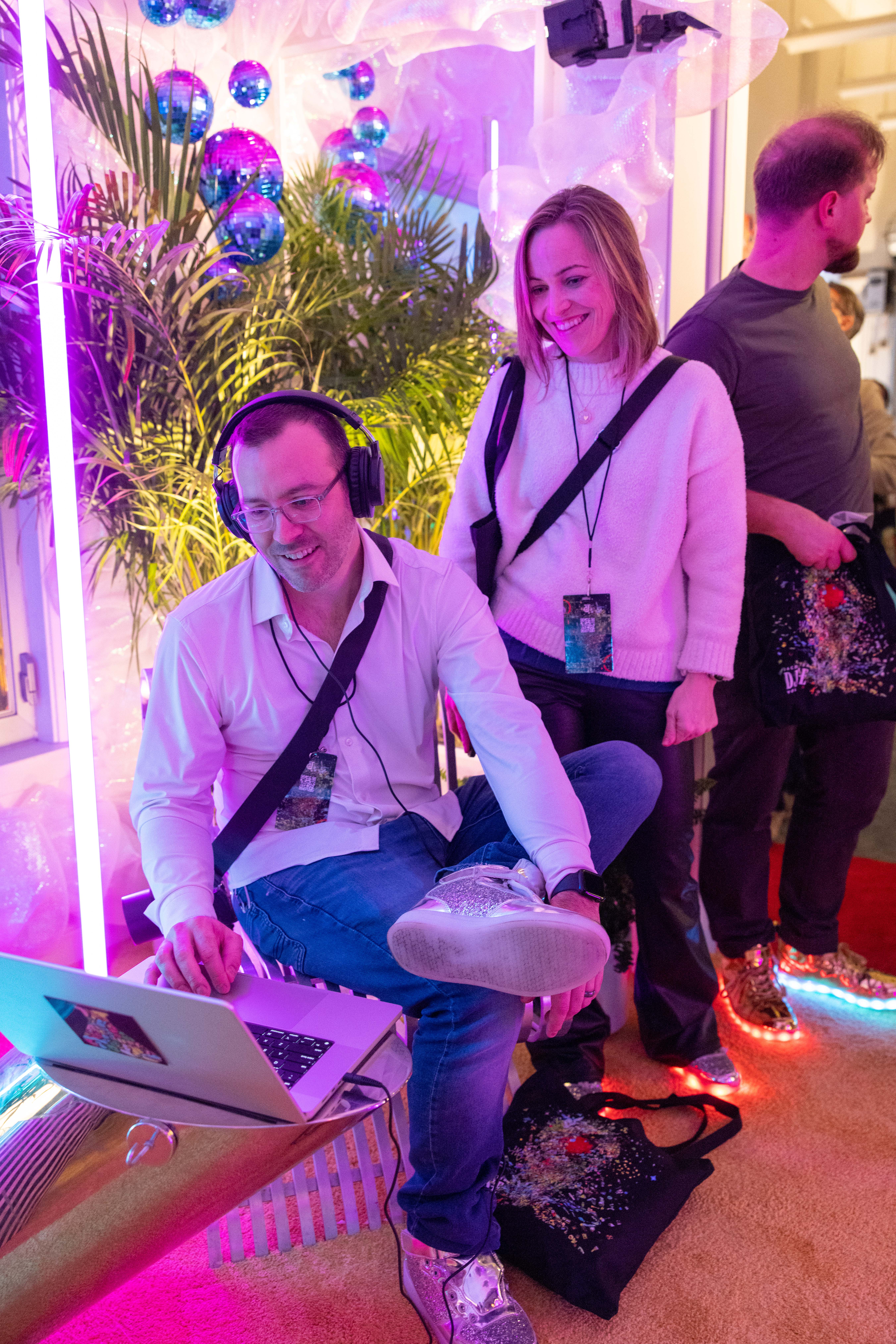 As guests demoed the new tech, the room’s reactive lighting adapted to each new user and danced playfully on the iridescent walls. Depending on the musical choices selected by MusicFX DJ, the lighting would change color, hue, and brightness to reflect the appropriate mood.